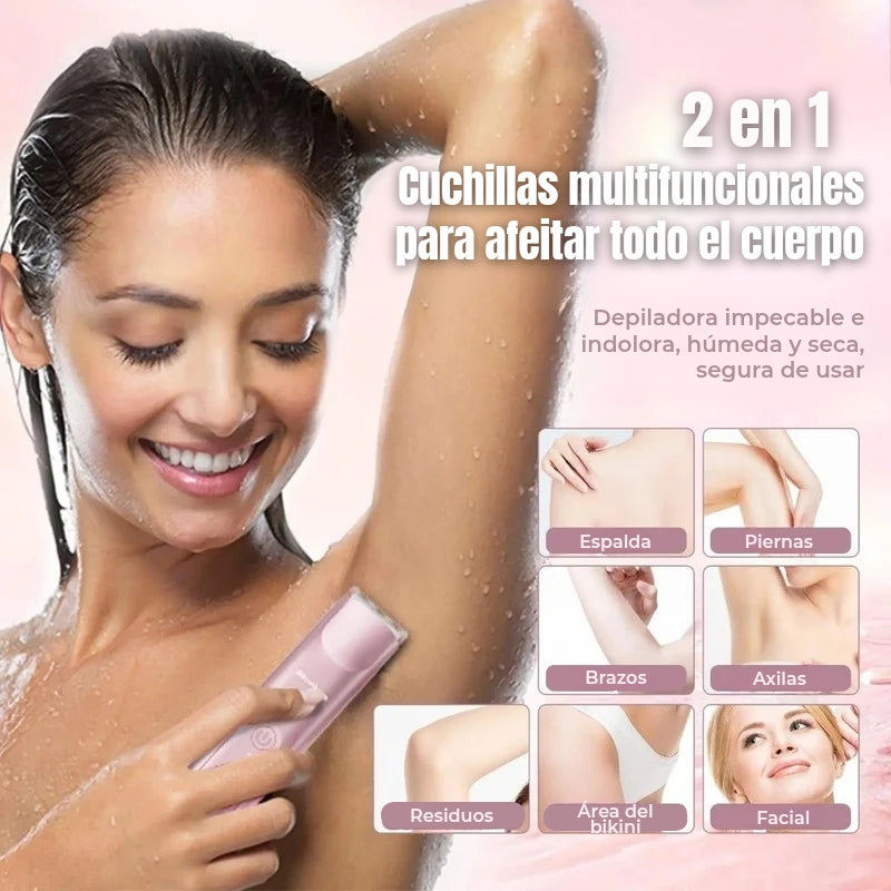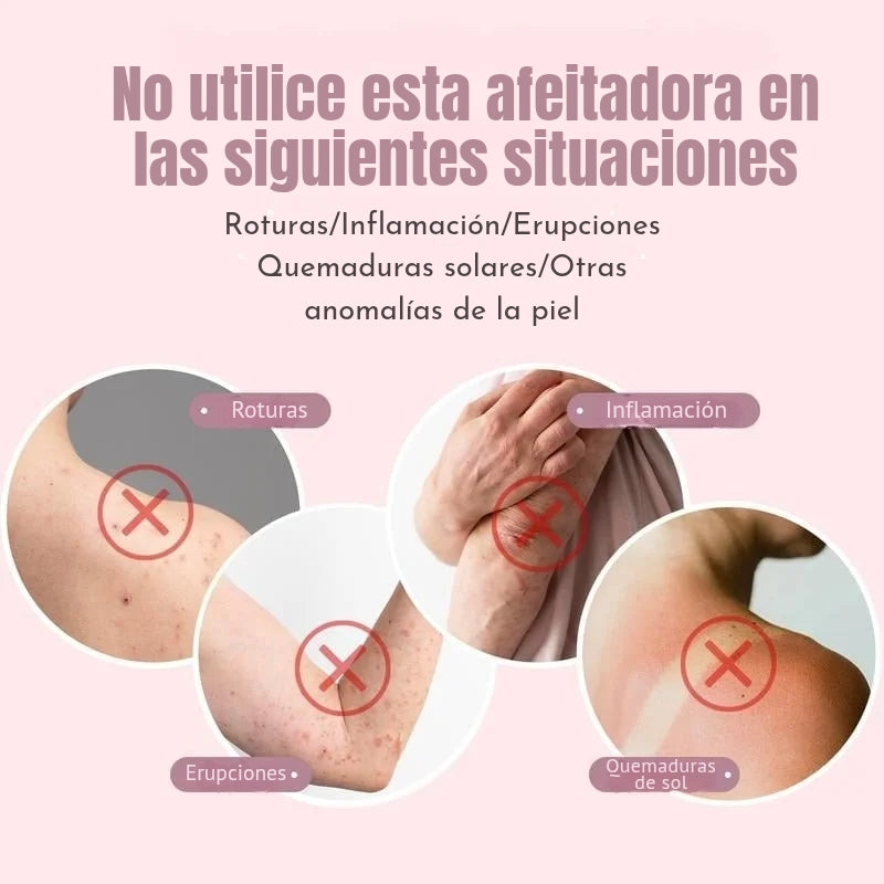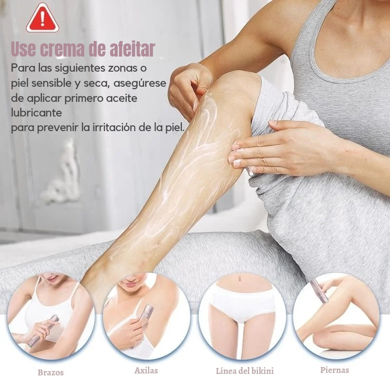 Sí. Su sistema de afeitado sin cuchillas expuestas y motor silencioso está diseñado para evitar cortes, enrojecimiento o irritación, incluso en zonas delicadas como el rostro o el área del bikini.