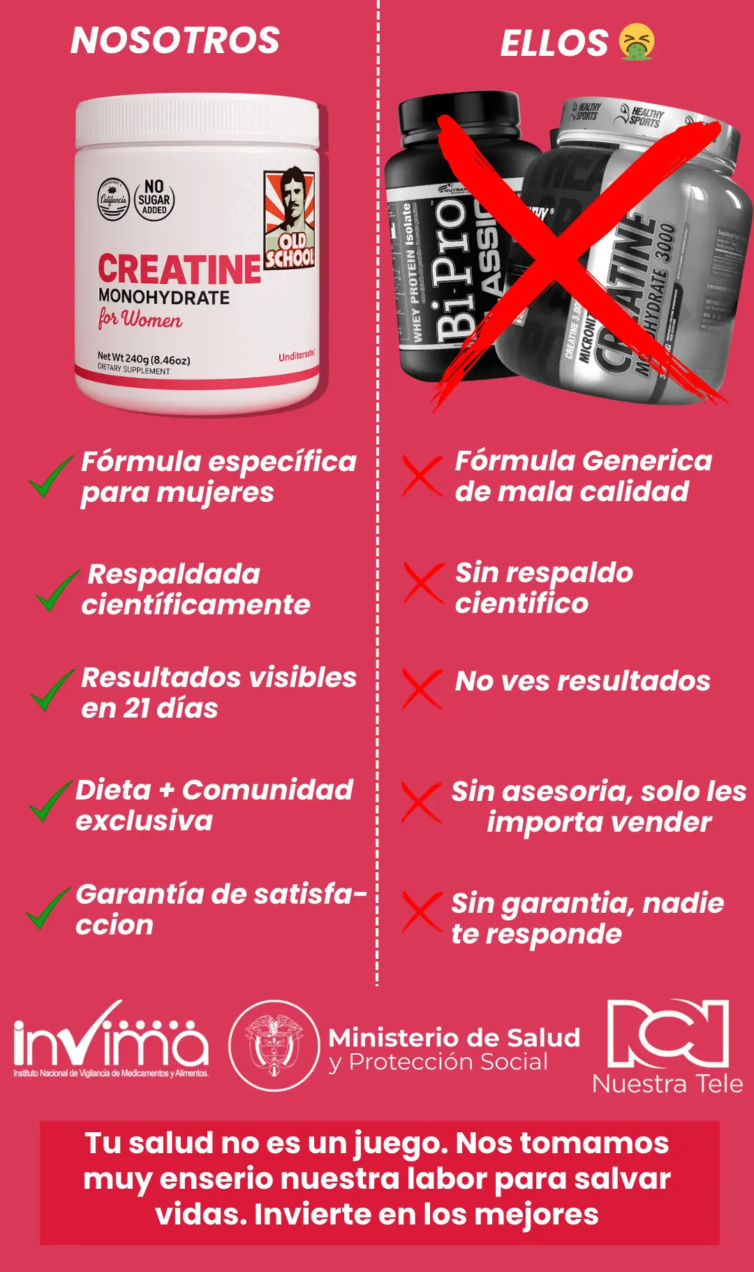 La creatina normal es para hombres, te pone piel de cocodrilo y sabe a ácido.