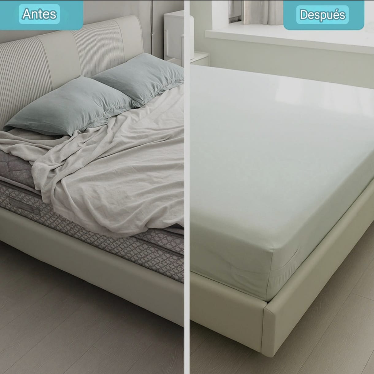 Podés dejarlos instalados y simplemente aflojarlos al retirar las sábanas. También son lavables a mano si lo necesitás.