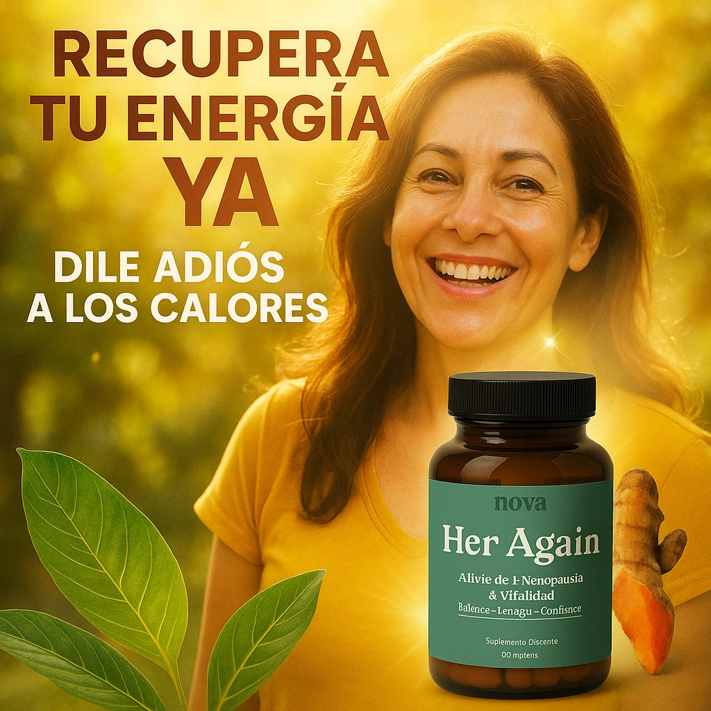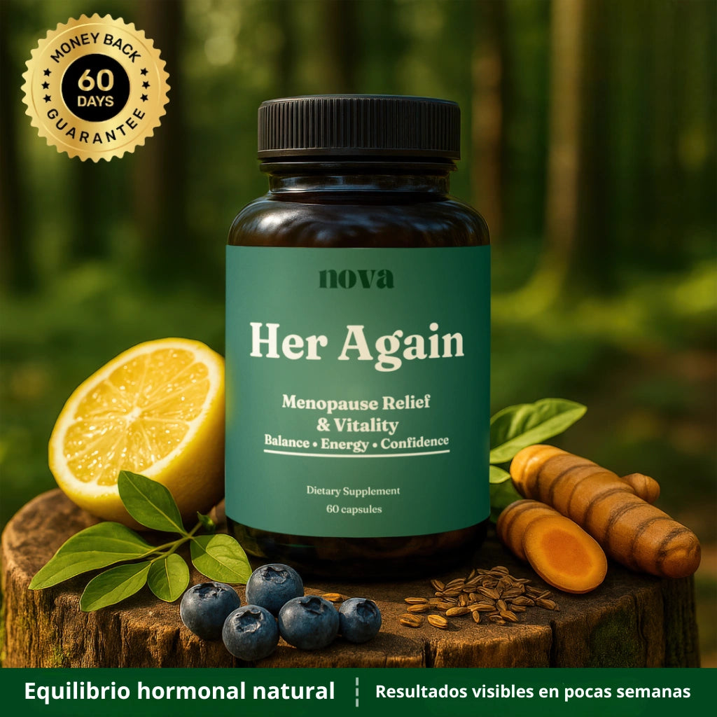 Sí. Her Again está formulado con ingredientes 100% naturales y comprobados, pensados para tu bienestar. Puedes sentirte tranquila, sin químicos ni riesgos innecesarios.