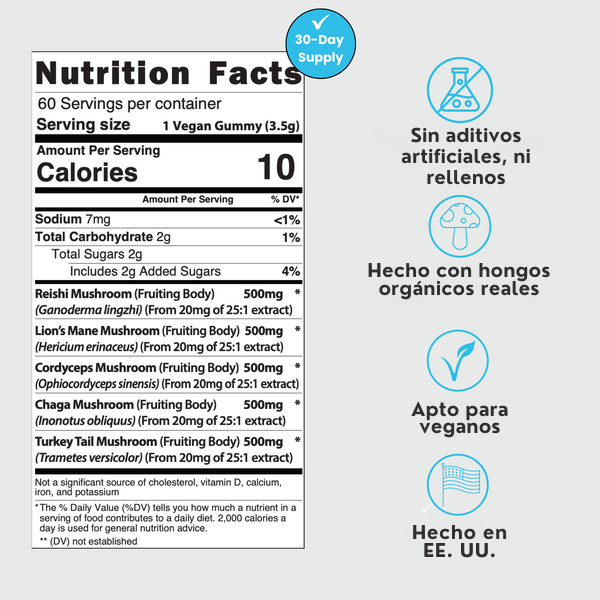 Cada frasco contiene 60 gomitas, lo que equivale a un mes de suministro.
